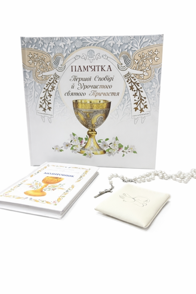 Набір для Першої Сповіді та Урочистого Святого ПричастяГотовий подарунок, у якому є все необхідне для пам’яті про величний день зустрічі з Євхаристійним Ісусом.У комплекті:Молитовник – щоденні молитви й короткі пояснення Таїнств