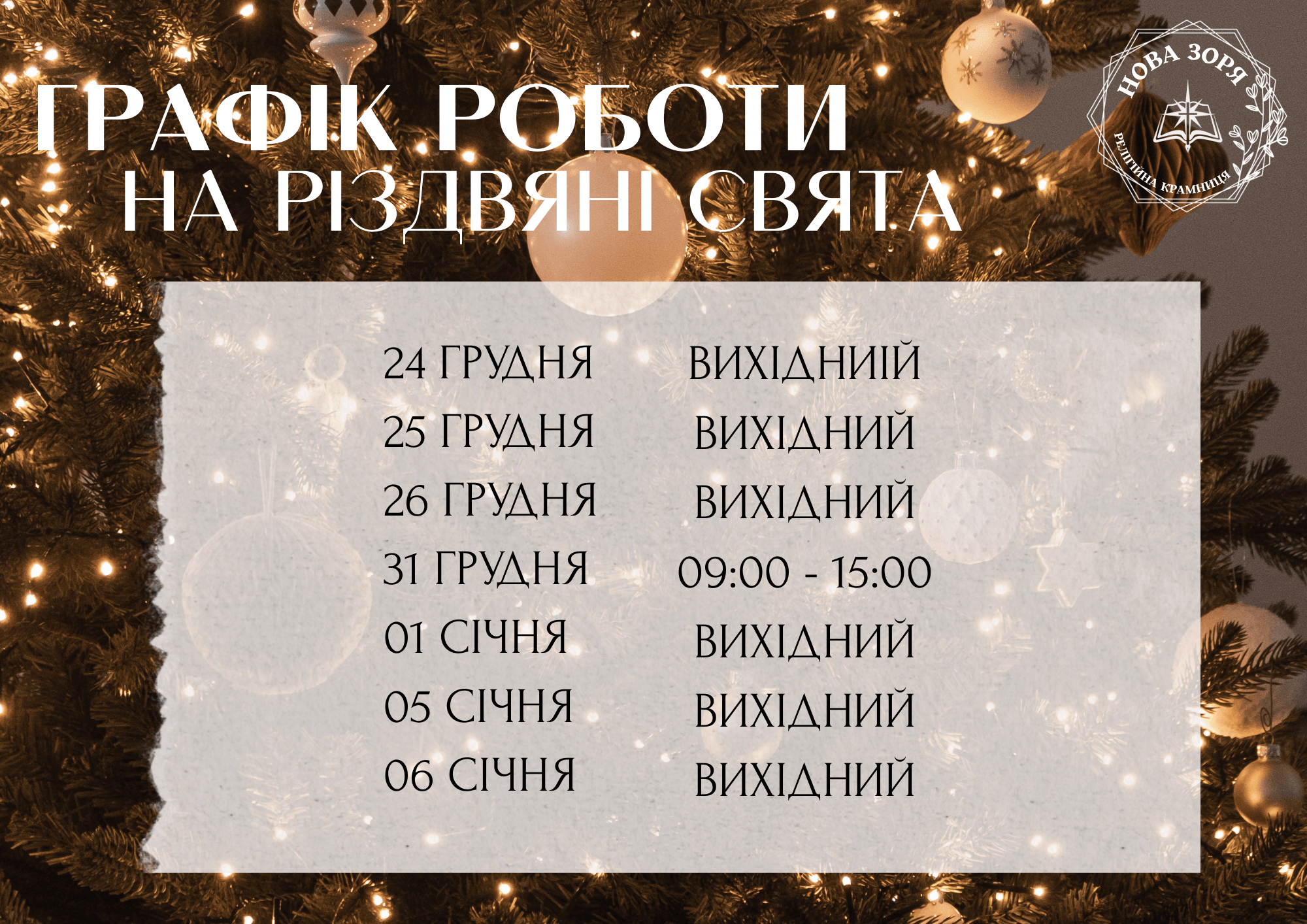🎄 Наш графік роботи на різдвяні свята