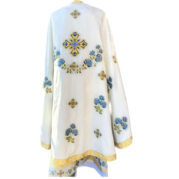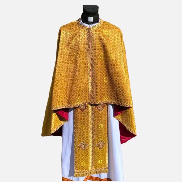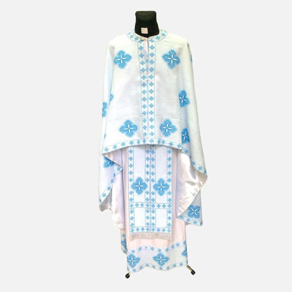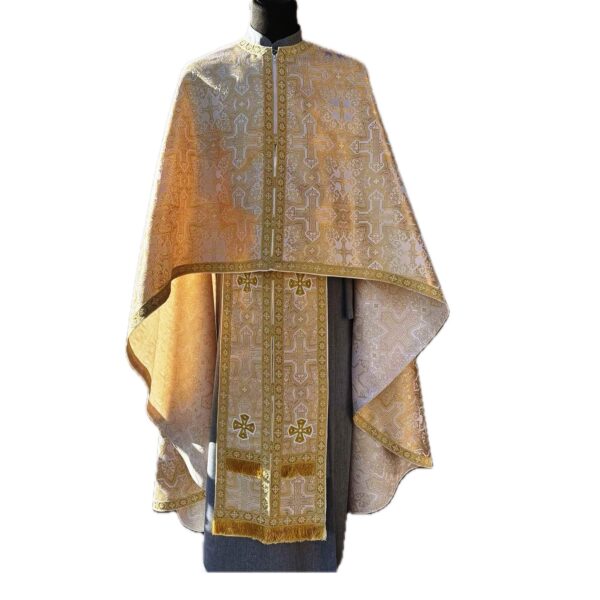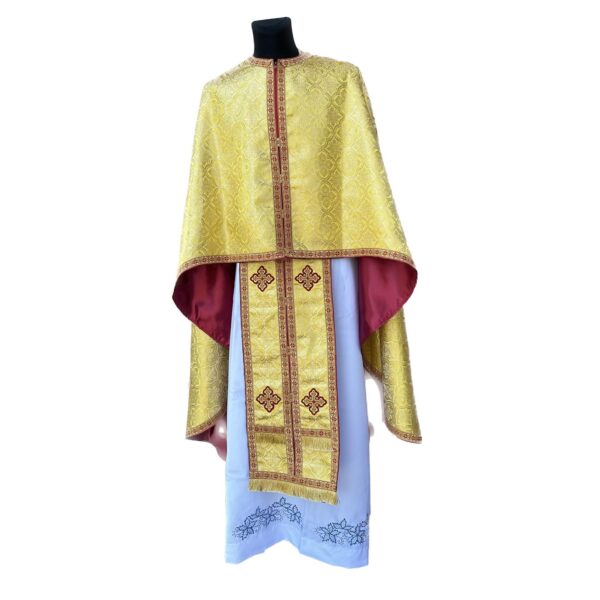 Матеріал: Італійська тканина Стихар: відсутній Склад: фелон, епітрахиль, нарукавники, пояс, додатки на Святі Дари.