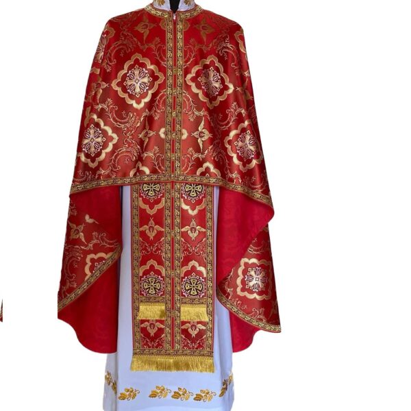 Тканина: італійська Галун грецький довжина фелону 130-135 см Склад: фелон, епітрахиль, пояс, нарукавники, покривці