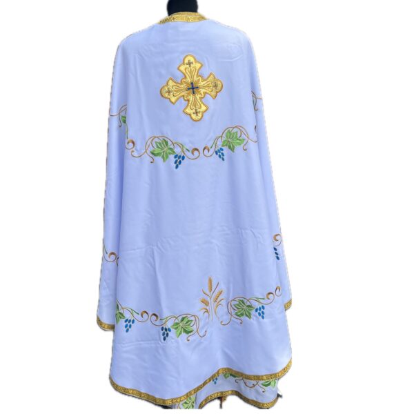 Ризи ієрейські 006758 вишиті, білий габардин з синім виноградом VOV