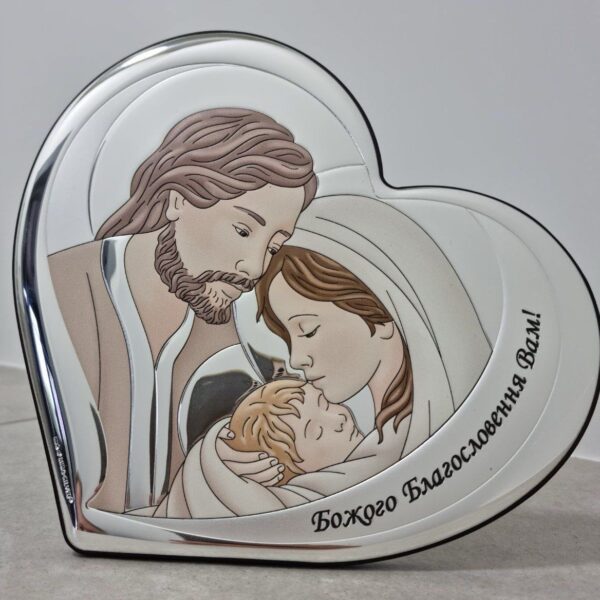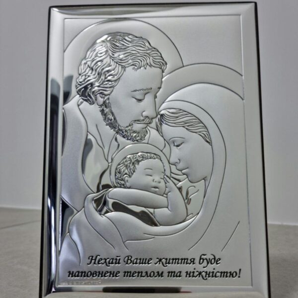 QF6003/3 Ікона срібна Свята Родина. Божого Благословення Вам! 15,5×14 см