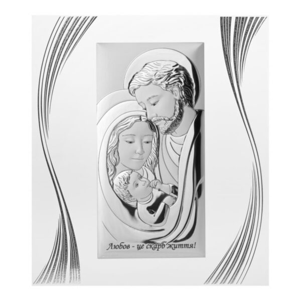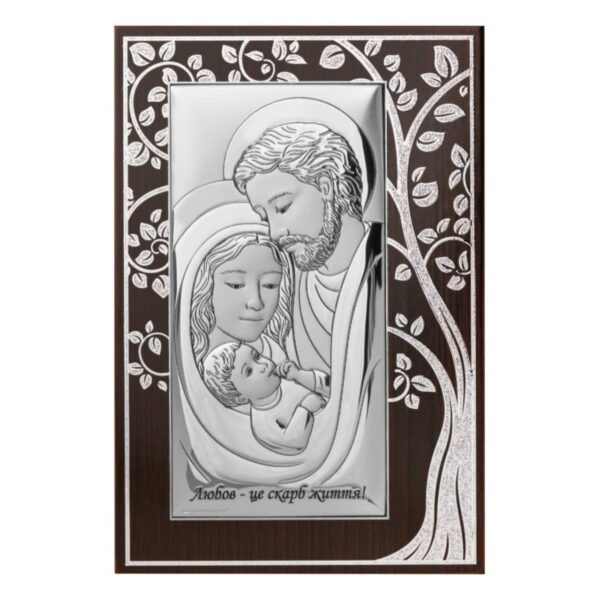 QF6005P/2X Ікона срібна Свята Родина. Любов — це скарб життя! Дерево життя. Біла. 17,5×25,3 см