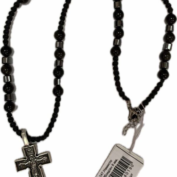 13.03.28.147 Намисто чоловіче Обсидіан 8 мм, Гематит куб 6 мм 59см Fursa 005311