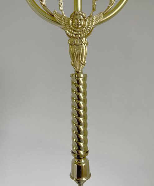 Трисвічник настольний електричний, Полірована латунь, Ідеально полірована і лакована латунь, Прозорий Економік, Шолєр Кристал Австрія (cкло пресоване без огранення), W375xH440mm, 3xE14. Серійна модель, може дещо відрізнятися від показаної.