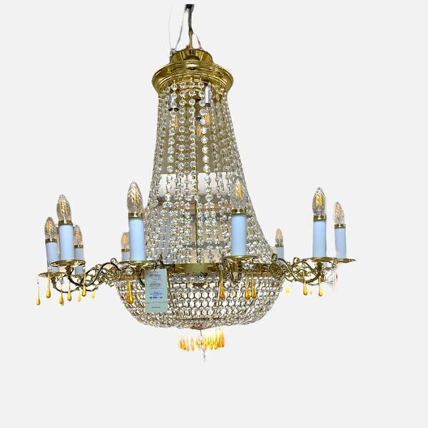 Люстра в одиничному екземплярі, латунь і кришталь Economic Line, 21хЕ14