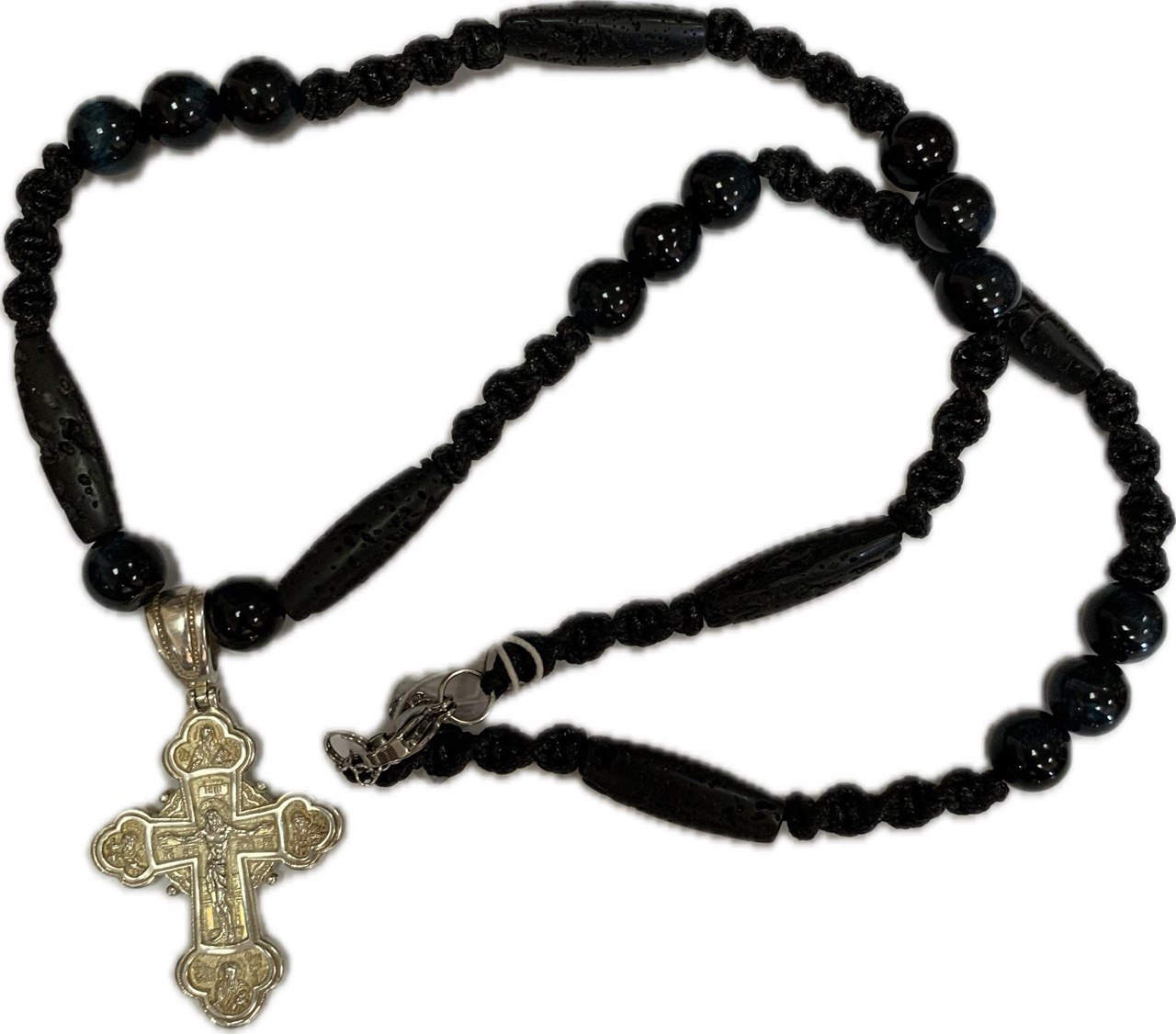 13.03.28.344 Екск.намисто “Архангел” Соколине око 10мм, Лава трубочка 25 мм, 60 см, Fursa 002463