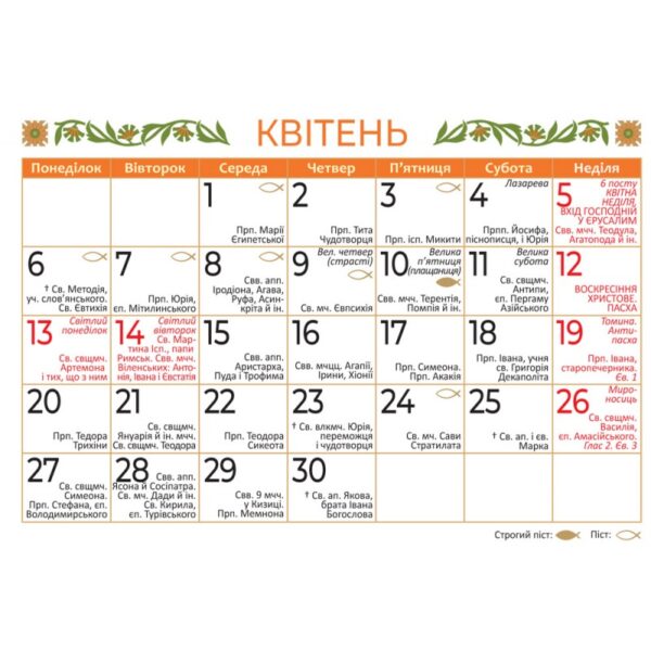 Календар 2026 р. – Церковний календар (ГІРКА)