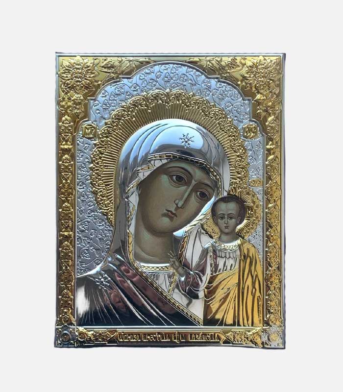 Головна ІКОНИ ІКОНИ СРІБНІ Богородиця (срібні ікони) 6690/3 Казанська Богородиця (13,7*17,2)