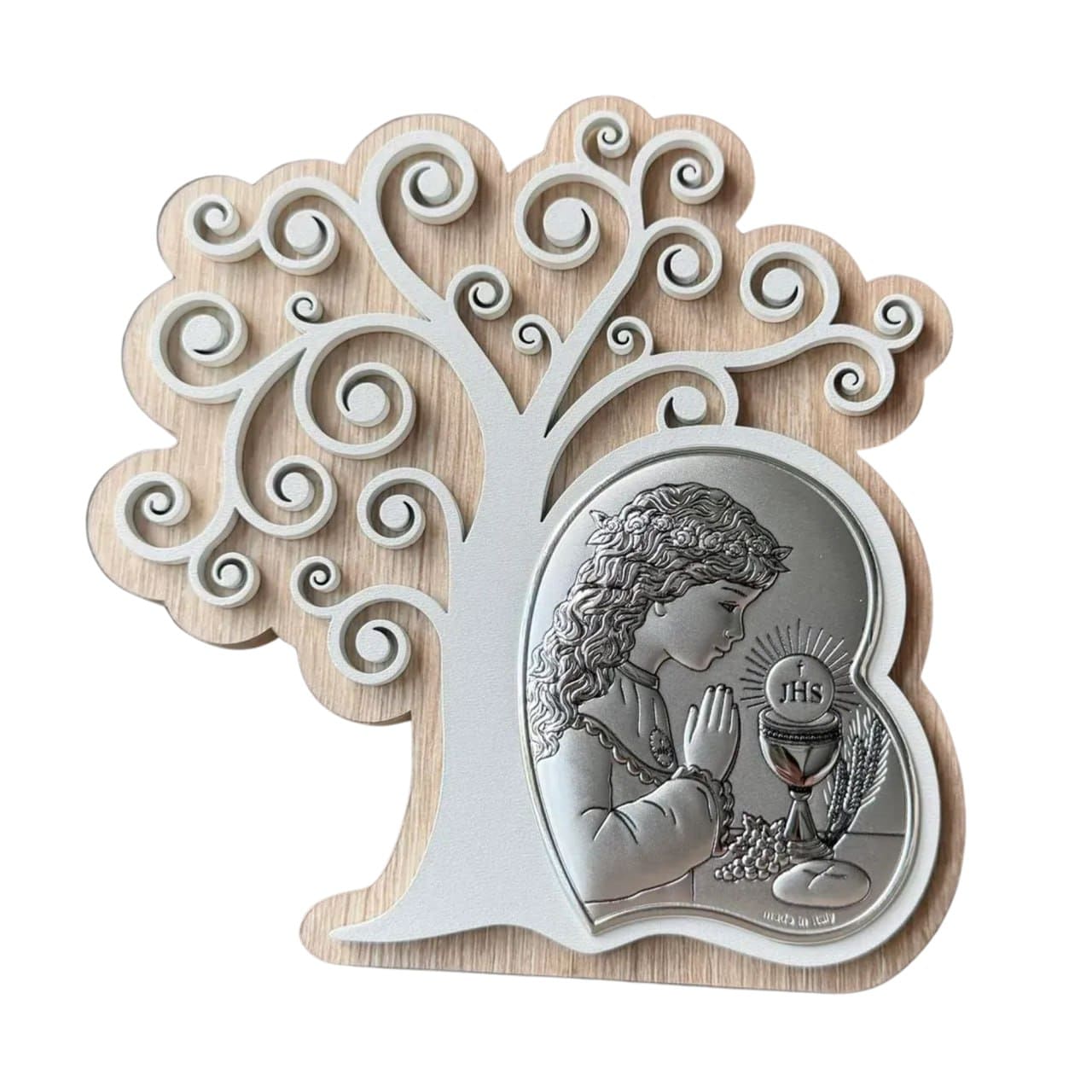 АЕ1107S Дерево життя та срібна іконка Преше причастя для дівчинки 14,5х15см