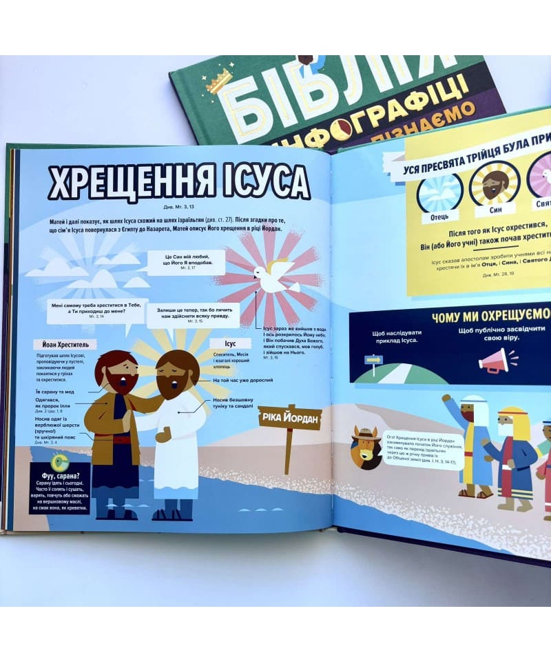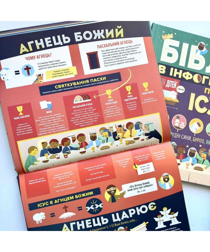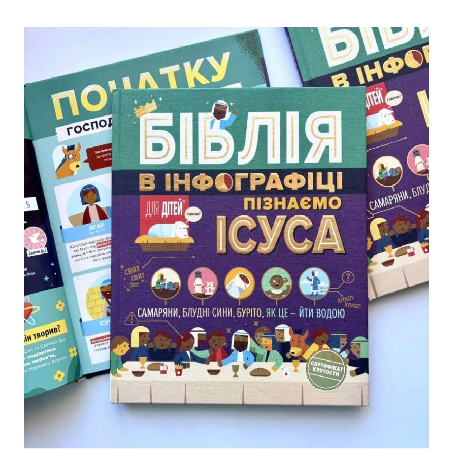 Також ви зануритеся у культуру, побут і традиції епохи Ісуса Христа, коли все, ну майже все, було по-іншому, ніж сьогодні! Так, це є і в інших книжках, але саме інфографіка допомагає пізнавати інформацію, поєднуючи цікаві факти і вигадливі зображення. Натхненної вам мандрівки з книжкою «Біблія в інфографіці для дітей. Пізнаємо Ісуса»!