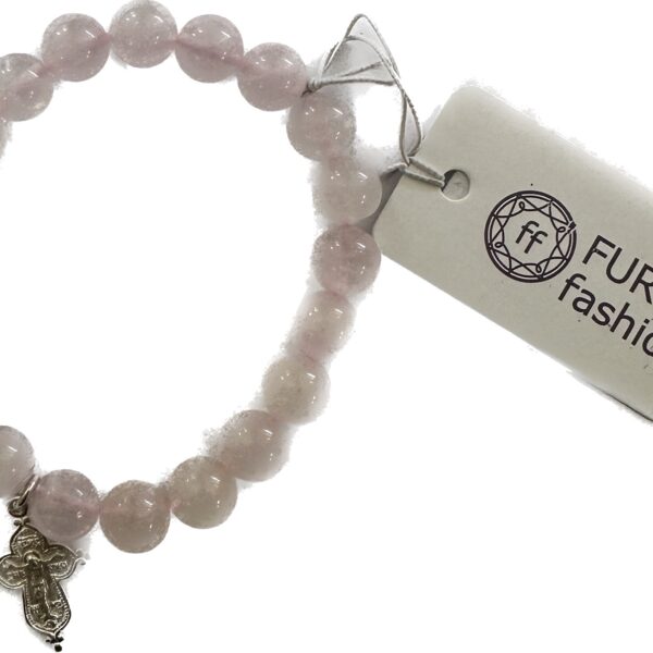 13.01.15.163 Екск браслет “Перше причастя 2” Рож.кварц рез 8 мм 14 розмір срібло 000838