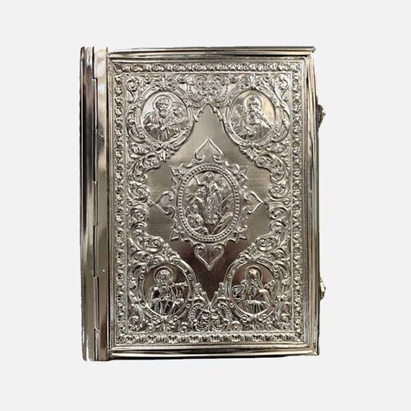 Матеріал: Металева палітурка ручної роботи; гравюра; емаль; оклад (метал, посріблення)