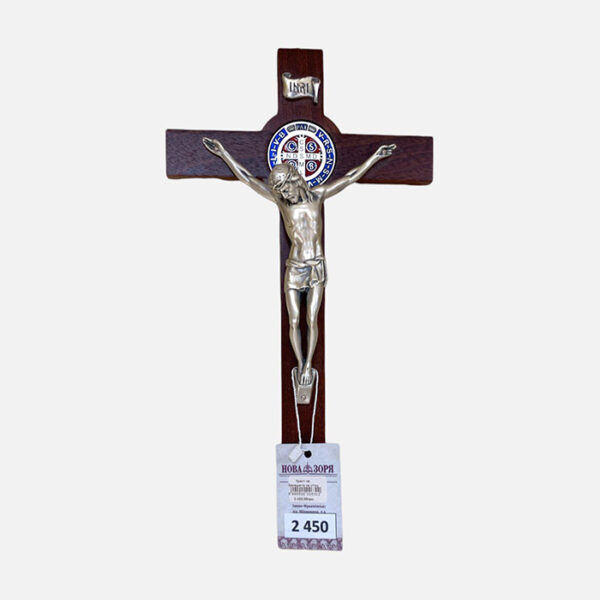 Хрест 000810 настінний дерево, медалик св.Бенедикта (15х29 см)