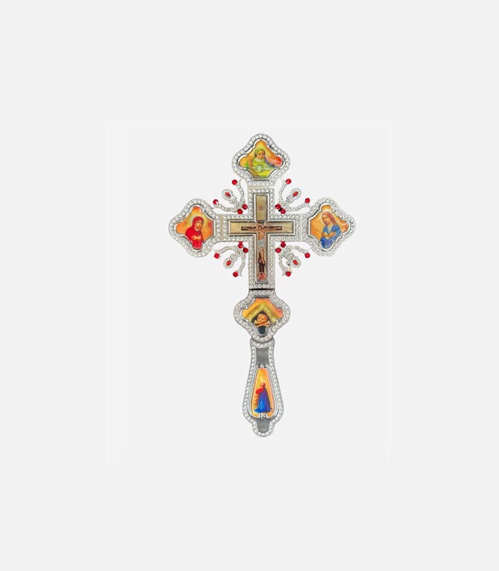 Хрест ручний 003682 нікельований напрестольний з іконами 30х19см
