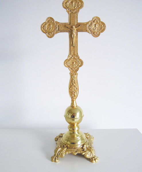 Хрест настольний, Полірована латунь, Ідеально полірована і лакована латунь, D200xH500mm. Серійна модель, може дещо відрізнятися від показаної.