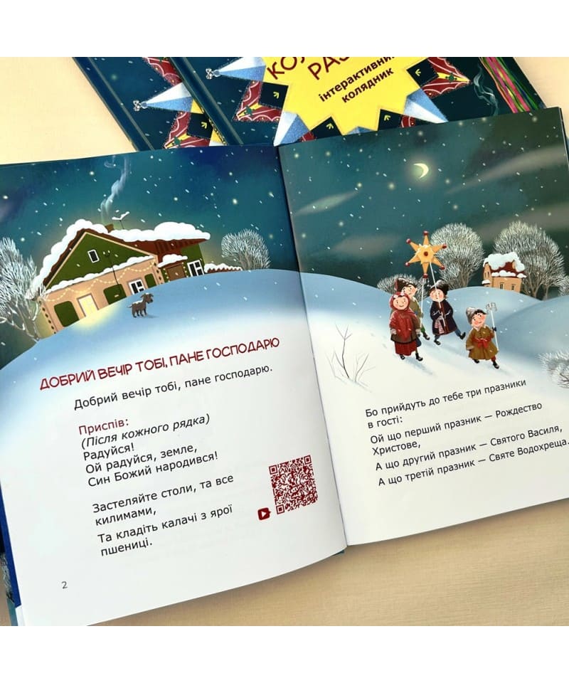 Коляда – важливий символ Різдва. Навчитися колядувати, щоби радісно привітати новонародженого Христа, можна за допомогою цієї книжки. Інтерактивний колядник створить особливу різдвяну атмосферу в кожній оселі: завдяки QR-кодам ви почуєте живе звучання дитячого хору “Радуниця”, а дійові особи з колядок оживуть у чудовій анімації, запрошуючи разом з ними неповторно пережити Різдво Христове. Колядуймо разом!
