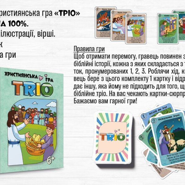 Гра допомагає вивчити приналежність і розташування книг Біблії, тренує пам’ять, розвиває логіку та вміння працювати в команді.