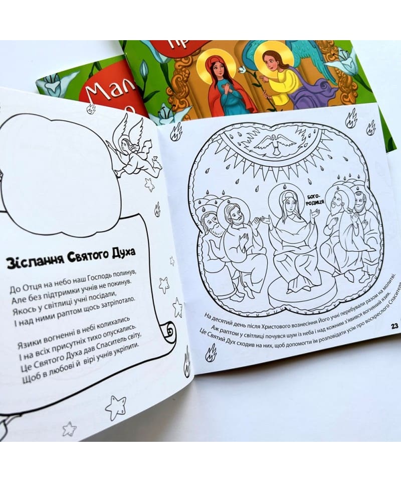 Тринадцять християнських свят тут ближчі стануть для малят. Ікон цих свят багато в храмі, про них розповімо віршами. Їх можна теж розмалювати, якщо наліпки відшукати.