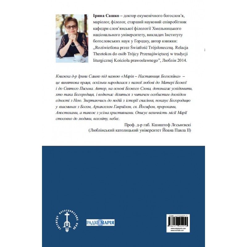 Ірина Сашко – доктор екуменічного богослов’я, маріолог, філолог, старший науковий співробітник кафедри слов’янської філології Хмельницького національного університету, викладач Інституту богословських наук у Городку.