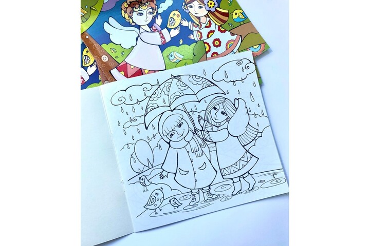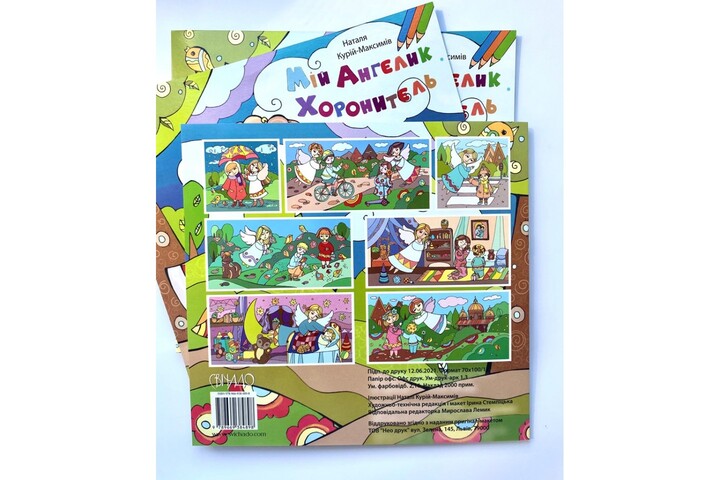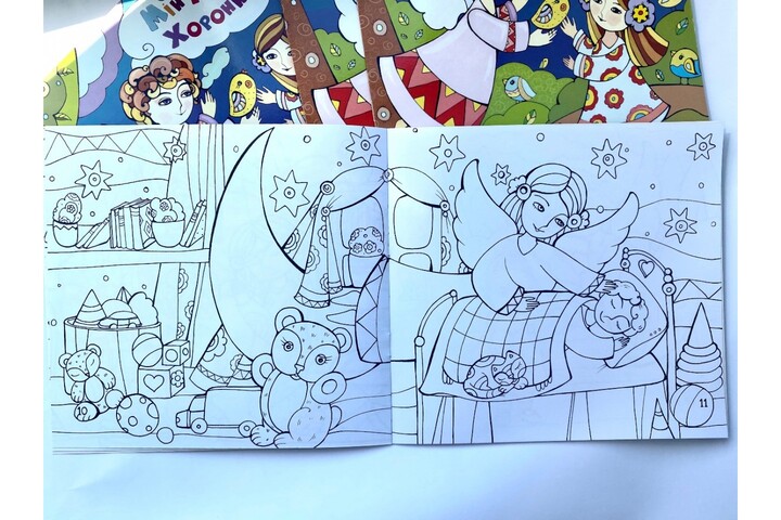 Ця розмальовка не тільки допоможе підібрати гарні барви, але й побачити ангела в різних цікавих і пізнавальних ситуаціях.