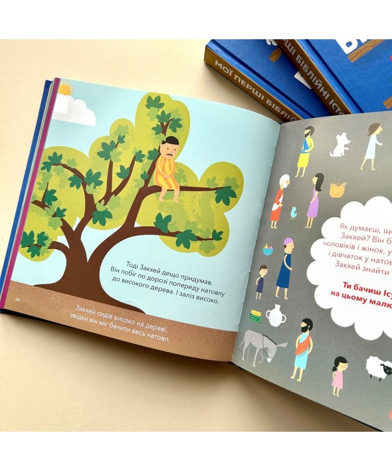 Біблія для дітей - це збірка 45 ключових біблійних історій про Бога та Його любов до людей, виявлену через жертву Ісуса Христа. Кожна розповідь написана сучасною українською мовою і ретельно звірена з першоджерелом. Яскраві і доброзичливі ілюстрації допоможуть найменшим читачам поринути у дивовижний світ історій сивої давнини. Сподіваємося, що ця книжка стане добрим помічником для вашої дитини у пізнанні Бога і чудового світу, створеного Ним.