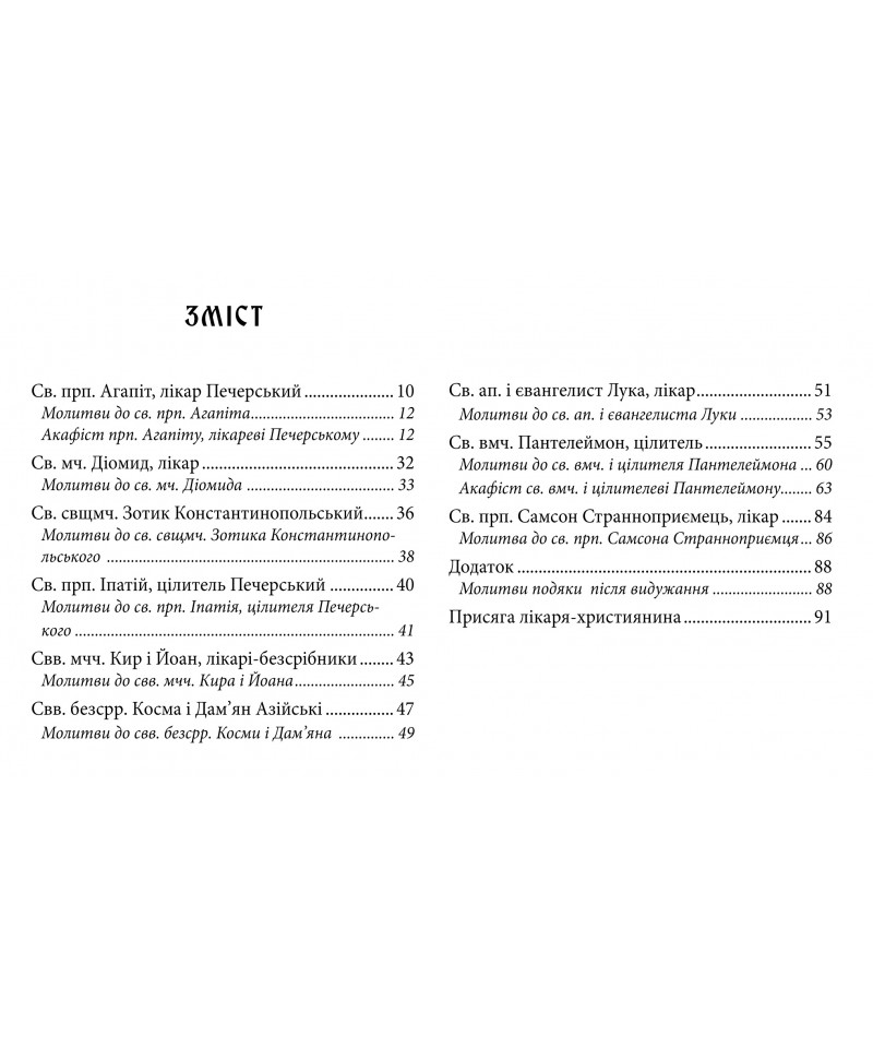 У запропонованому молитовнику розповідається про святих, що у своєму земному житті були лікарями, а також вміщено молитви та акафісти до них. Видання призначене для медичних капеланів, медиків, пацієнтів та їхніх рідних, а також для всіх, хто у душевному стражданні й тілесному терпінні потребує молитовної підтримки.