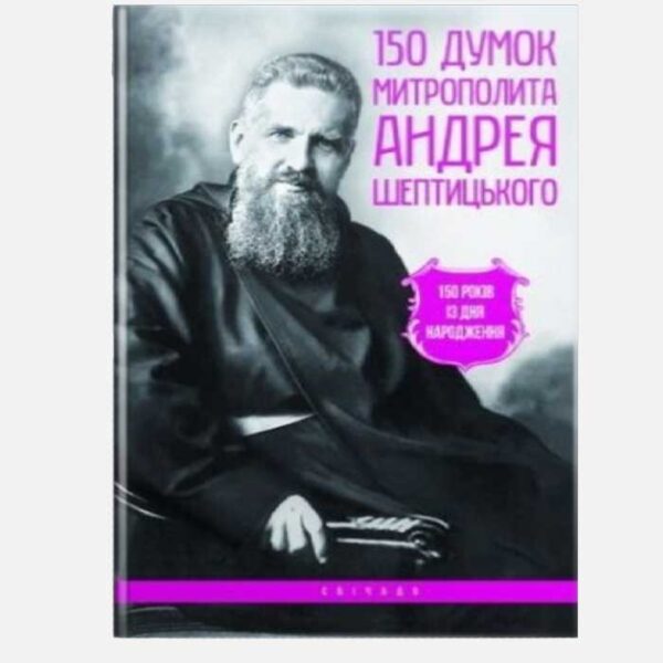 "150 думок митрополита Андрея Шептицького" - це збірка богословських роздумів Отця і Глави Української Греко-Католицької Церкви (1900-1944рр.) на церковно-суспільну тематику. Ці роздуми - фрагменти з його пастирських послань, декретів, проповідей і наукових праць. Вони стануть своєрідним щоденним порадником на різні випадки життя. Їх можна читати цілісно або вибірково. Без перебільшення, кожне слово Митрополита, попри простоту його викладу, - актуальне, кожна думка - влучна і доречна на всілякі потреби і проблемні питання."Був він великим сином Вселенської Католицької Церкви. Великим Українцем, вченим, мистецтвознавцем, покірним богомольцем і Митрополитом, рівного якому нелегко знайти не лише в нашій історії, але й загалом в останньому столітті нашої Церкви. В кожній ділянці чинний і письмом, і словом, і ділом, буквально до останнього віддиху життя. Словом, був він честю і окрасою нашої Церкви і Народу".