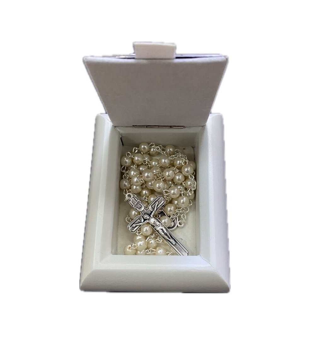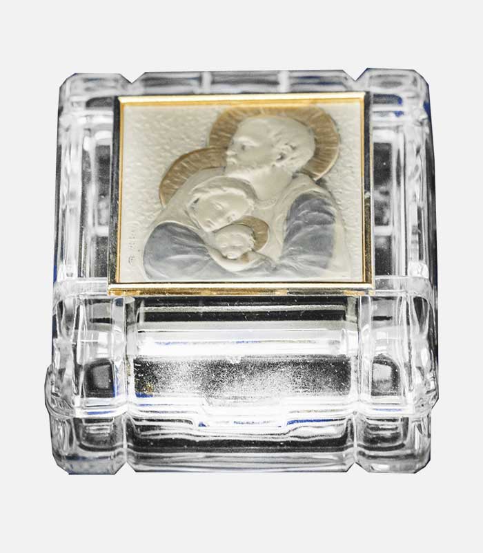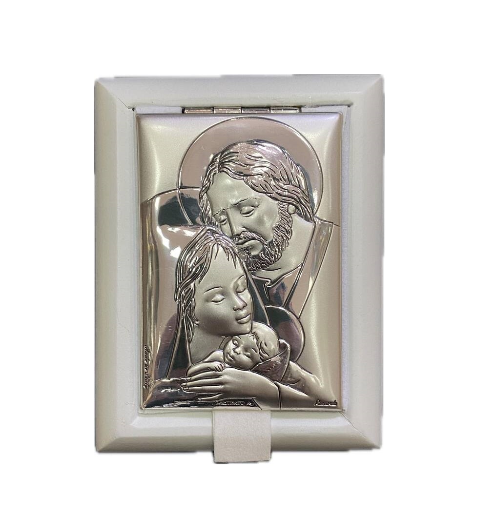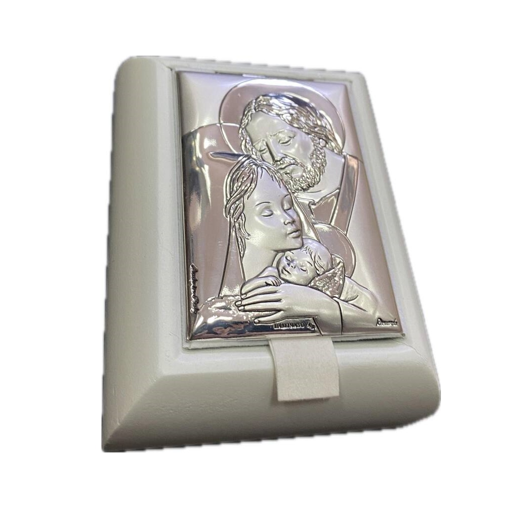 PR6153C Дерев’яна шкатулка з срібною іконкою Родина та вервицею 7х9 см