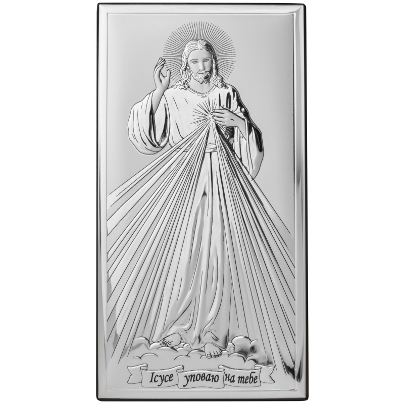 QF6006/3 Ікона срібна Ісус милосердний. Ісусе уповаю на тебе 11×21,54 cм