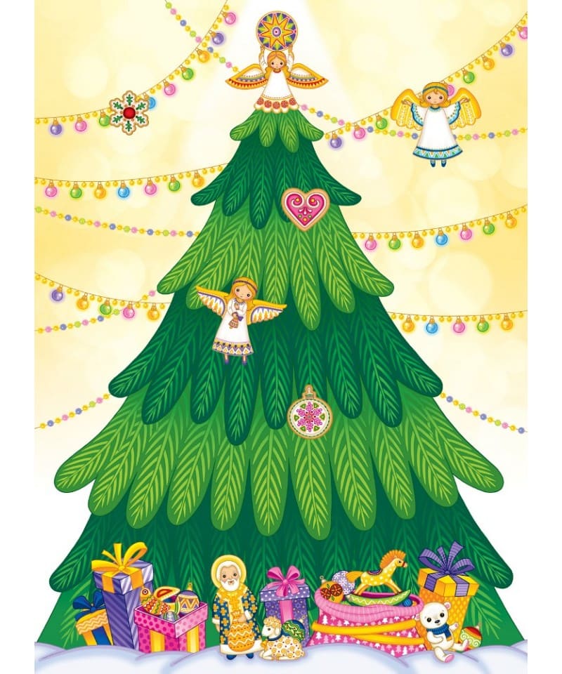 Різдвяна ялинка з наліпками + розмальовки