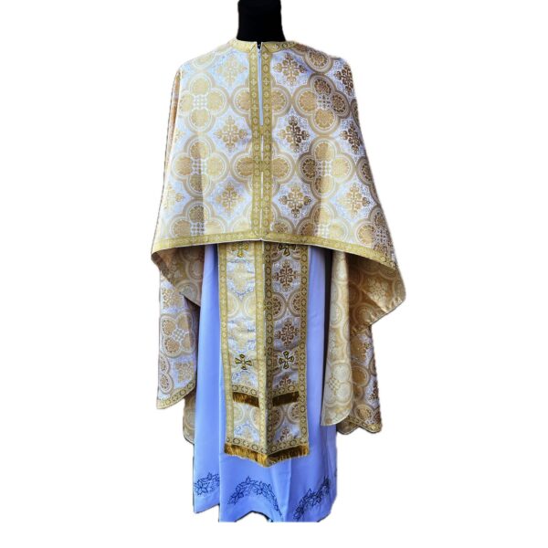 Матеріал: Італійська тканина Стихар: відсутній Склад: фелон, епітрахиль, нарукавники, пояс, додатки на Святі Дари.