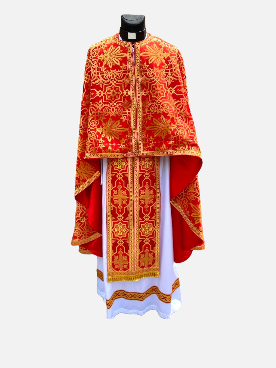 Матеріал: Італійська тканина Стихар: відсутній Склад: фелон, епітрахиль, нарукавники, пояс, додатки на Святі Дари.