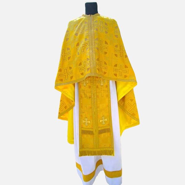 Грецький крій В комплект входять: Стихар, епітрахиль, пояс, набедренник, нарукавники, фелон, покривці