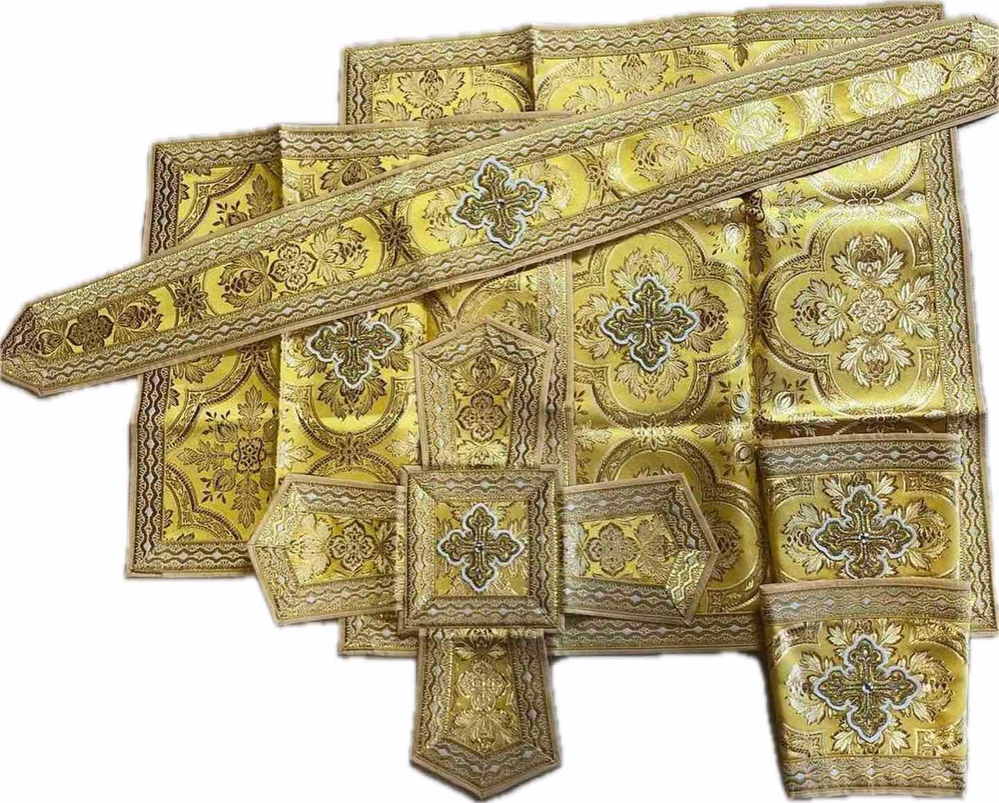 Грецький крій В комплект входять: Стихар, епітрахиль, пояс, набедренник, нарукавники, фелон, покривці