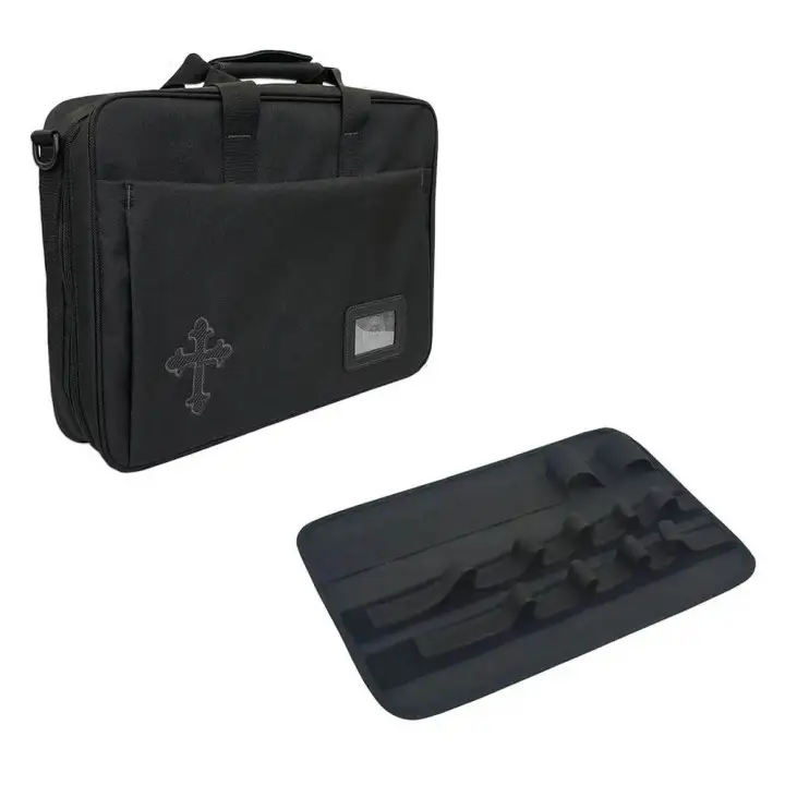 Розмір - 155х74см. Розміри кишень - 35х32см.Матеріали: поліестер D210, ПВХ-плівка.Чохол ЧСО-2 від українського виробника Renesans призначений для зберігання та перенесення облачення священнослужителя. Виготовлений з високоякісного зносостійкого поліестеру D210. Закривається на замок «блискавку» та надійно захищає ризи від бруду та пилу під час транспортування.Зверху передбачені отвір для гачка вішака та петля для підвішування. На фронтальній стороні з однієї сторони методом шовкотрафаретного друку нанесений малюнок з хрестом, що надає йому сакрального значення та естетичного вигляду. З іншої сторони – нашита кишенька з ПВХ плівки для ідентифікатора. Знизу виробу нашиті дві великі кишені для аксесуарів священника.Завдяки своїй конструкції та функціональності, ЧСО-2 є ідеальним чохлом для зберігання та транспортування священничого облачення з місця на місце.