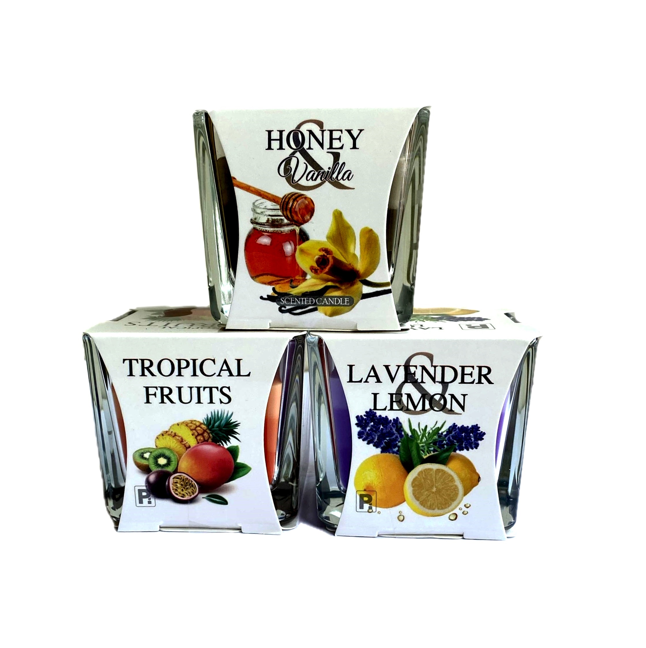 Свічка в склі ароматична Кубик (70х63) в асортименті 004107