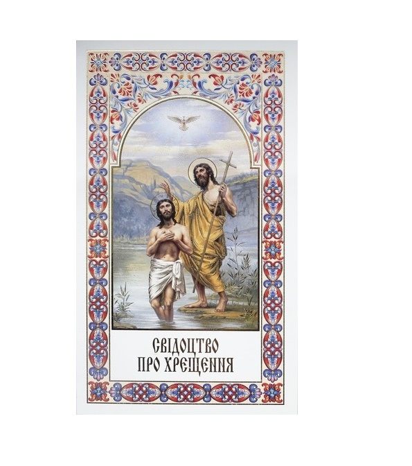 Свідоцтво про Хрещення (біле з іконою Хрещення Ісуса) 003705