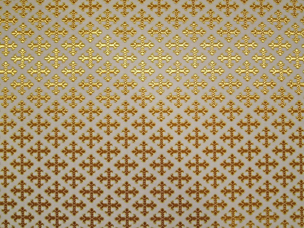 Шовкова тканина церковної тематики – Хрест поліставрій білий із золотом.