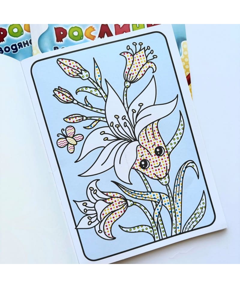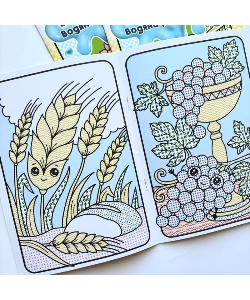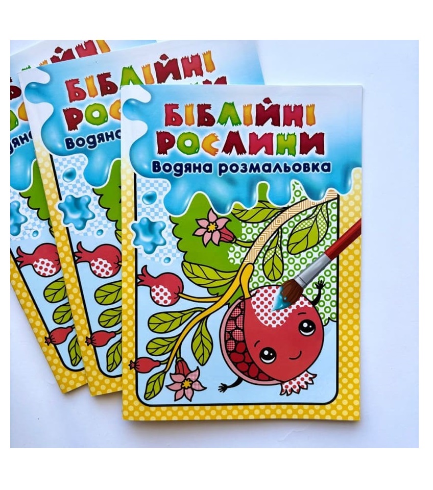 Водяна розмальовка з біблійними рослинками для наймолодших: від 1 року до 3. Фішечка книжечки, що дитина може малювати навіть пальцем, намоченим у воду. Рослини олюднені: з привітними оченятами, що викликають приємні емоції, відкриті до спілкування.