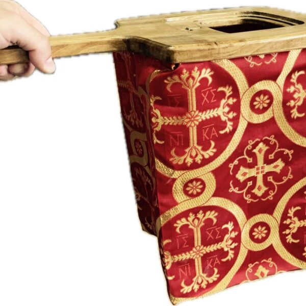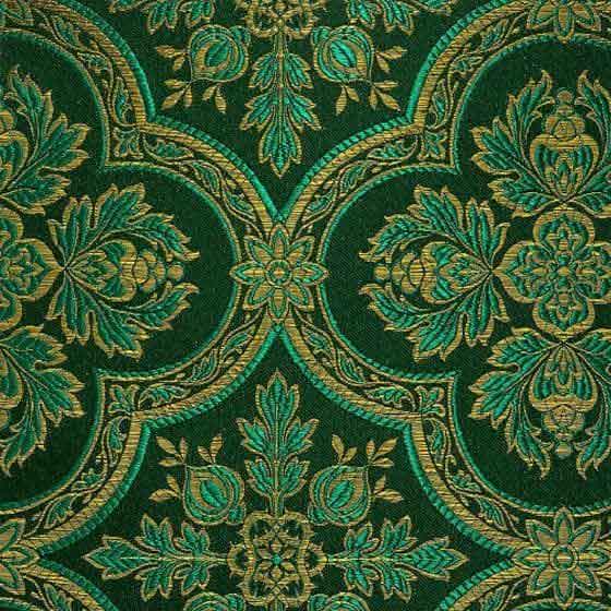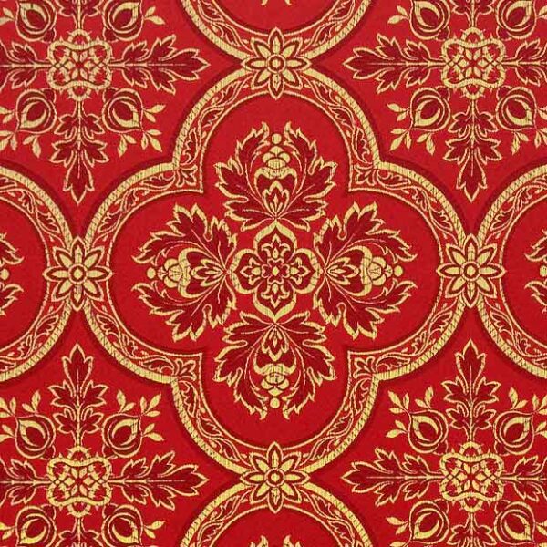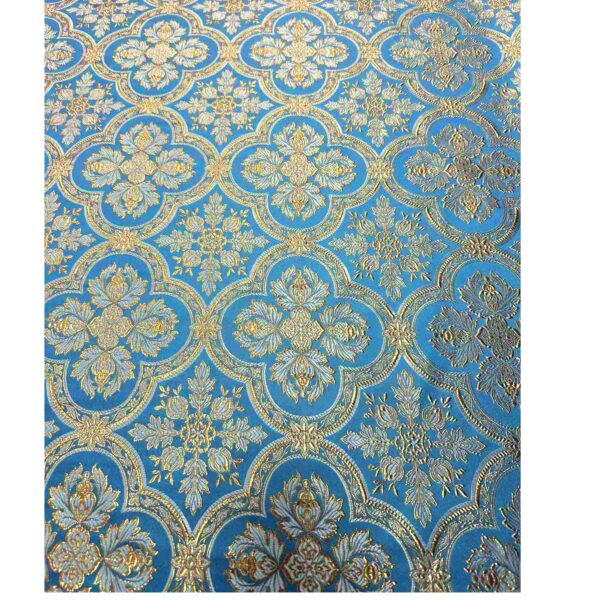 Шовкова тканина церковної тематики - Хрест поліставрій білий із золотом.Ширина полотна 1,6 м., Щільність 420г. метр погонний.Ширина рапорту – 3,5см., кількість малюнків на ширину тканини – 46.